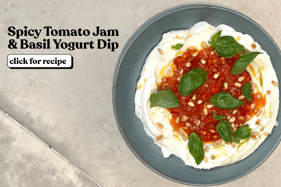 Recipe: Spicy Tomato Jam & Basil Yogurt Dip